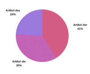 Około 41% wszystkich niemieckich rzeczowników ma rodzajnik “der”, 35% ma rodzajnik “die”, natomiast 24% rzeczowników ma rodzajnik “das”.